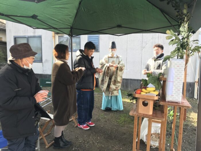 2022.12.18 現場日記 MA様邸 地鎮祭 TOP新着情報現場日記MA様邸 地鎮祭 今日は大安で地鎮祭行いました。 今回の施主様もイニシャルMなのでMA様で行きます。 とても寒い1日でした。 前の記事 2022.12.18 M様邸 外壁杉板張り工事 次の記事 2022.12.22 H様邸 キッチンリフォーム