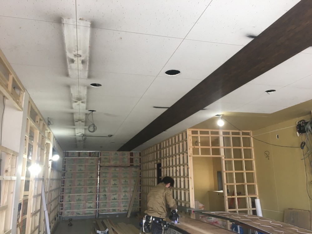 事務所改装工事 天井板張り~