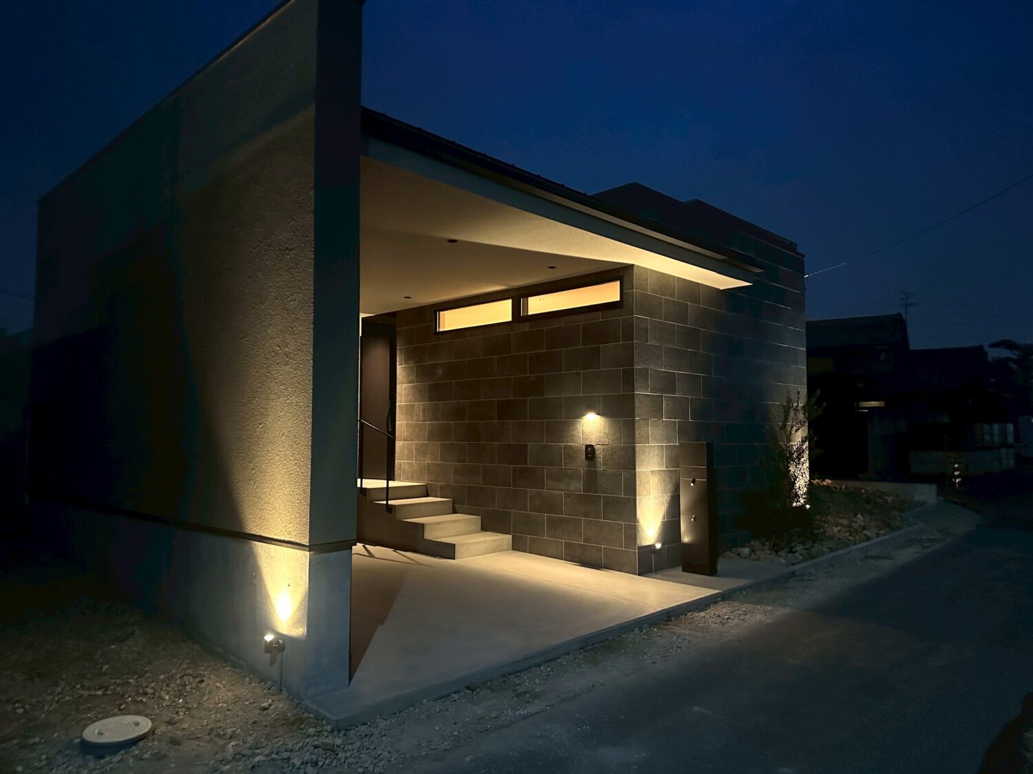 夜景に映えるスタイリッシュなビルトインガレージの家